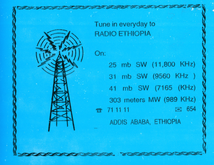 | 6090 | 0258-2100 | Amhara State Radio | Ethiopia | Amharic | 1234567 | 100 | Geja Jewe |