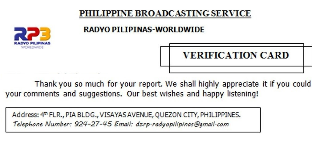 | 12010 | 0200-0330 | Radio Pilipinas | Philippines | English | 1234567 | Tinang |
